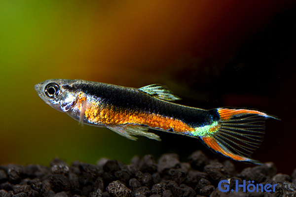 Geschlechtsunterschied: M mit Gonopodium, deutlich kleiner, farbenprächtiger