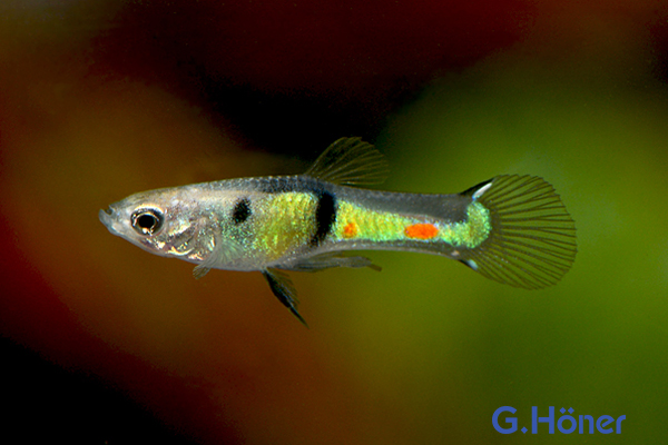 Geschlechtsunterschied: M mit Gonopodium, deutlich kleiner, farbenprächtiger