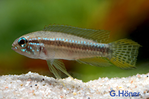 Geschlechtsunterschied: M farbige, ausgezogene Flossen