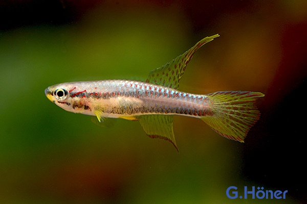 Geschlechtsunterschied: W schlicht, M farbig mit ausgezogenen Flossen