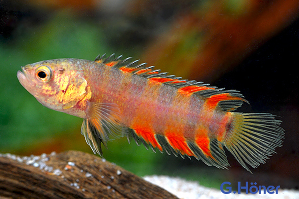 Geschlechtsunterschied: M farbiger, spitze Rückenflosse